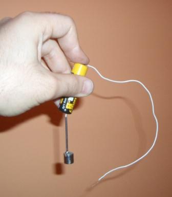 Daha sonra kablonun açık olan diğer ucunu mıknatısa yavaşça dokundurun. Çivinin hızla dönmeye başladığını göreceksiniz.
