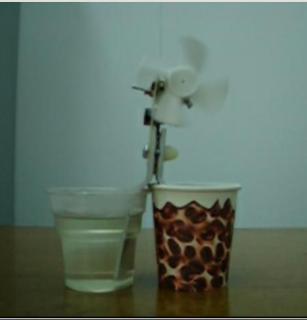 Sıcaklık farkı oluştuğunda sistemde elektrik üretildiği ve bağlı olan küçük motorun döndüğü gözlemlenir.